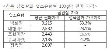 ◯ Çѵ· »ï°ã»ìÀÇ ¾÷¼ÒÀ¯Çüº° 100g´ç Æò±Õ ÆÇ¸Å°¡°Ý