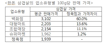 ◯ Çѵ· »ï°ã»ìÀÇ ¾÷¼ÒÀ¯Çüº° 100g´ç Æò±Õ ÆÇ¸Å°¡°Ý