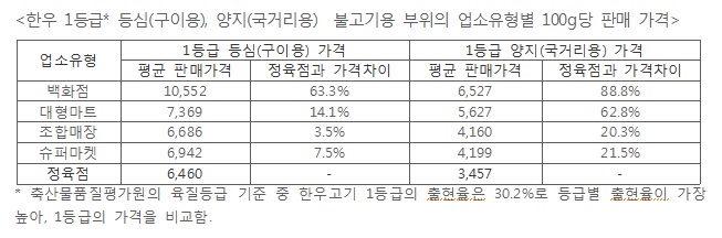 ◯ ÇÑ¿ì 1µî±Þ µî½É(±¸ÀÌ¿ë)ÀÇ ¾÷¼ÒÀ¯Çüº° 100g´ç Æò±Õ ÆÇ¸Å°¡°Ý