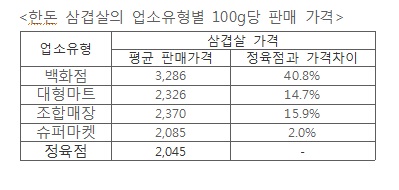 ◯ Çѵ· »ï°ã»ìÀÇ ¾÷¼ÒÀ¯Çüº° 100g´ç Æò±Õ ÆÇ¸Å°¡°Ý