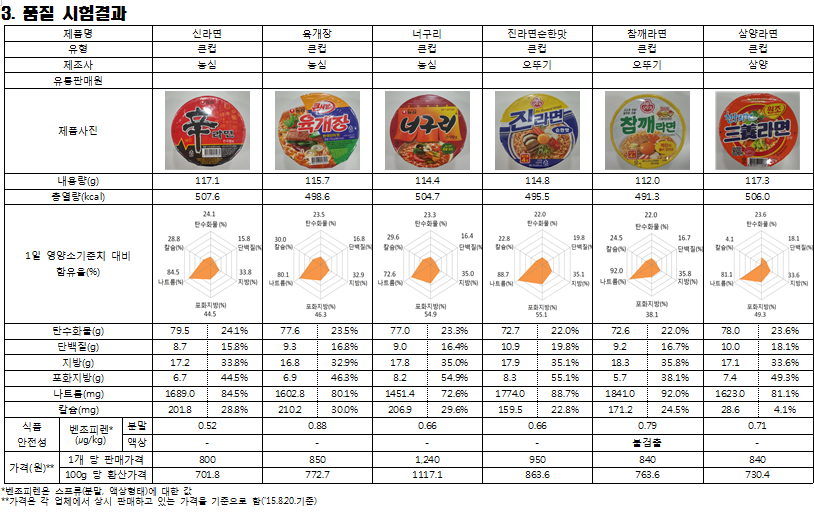 ¡à ¼ÒºñÀÚ ¼³¹®Á¶»ç °á°ú, ¼ÒºñÀÚ ¼±È£µµ°¡ ³ôÀº À¯ÅÁ¡¤±¹¹° ÄŶó¸é 4°³ ¾÷üÀÇ 12°³ Á¦Ç°À» ´ë»óÀ¸·Î ½ÃÇ衤Æò°¡ÇÏ¿´´Ù.